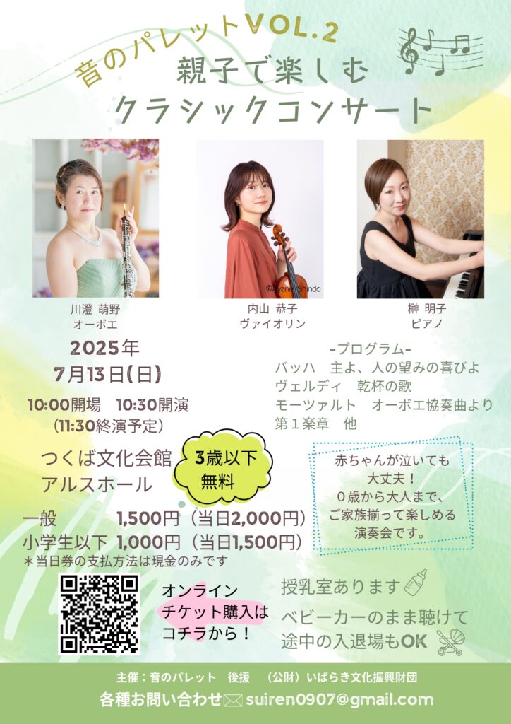 昨年もご好評頂きました『音のパレット 親子で楽しむクラシックコンサート』の第2弾!